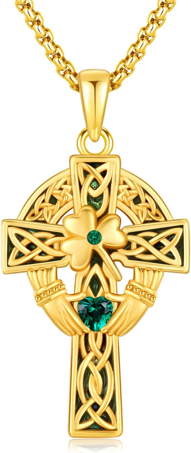 14K Gold Plating Celtic Cross Necklace 925 Sterling Silver Celtic Tree of Life cross pendant Abalone Shell Cross Necklac for Men Religious Protective Jewelry Gift For Men Women