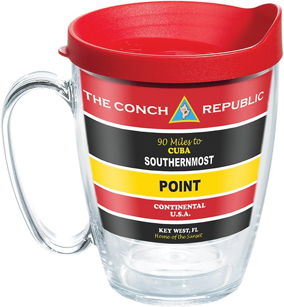 Tervis Florida - Southernmost Point Buoy Tumbler with Wrap and Red Lid 16oz Mug, Clear