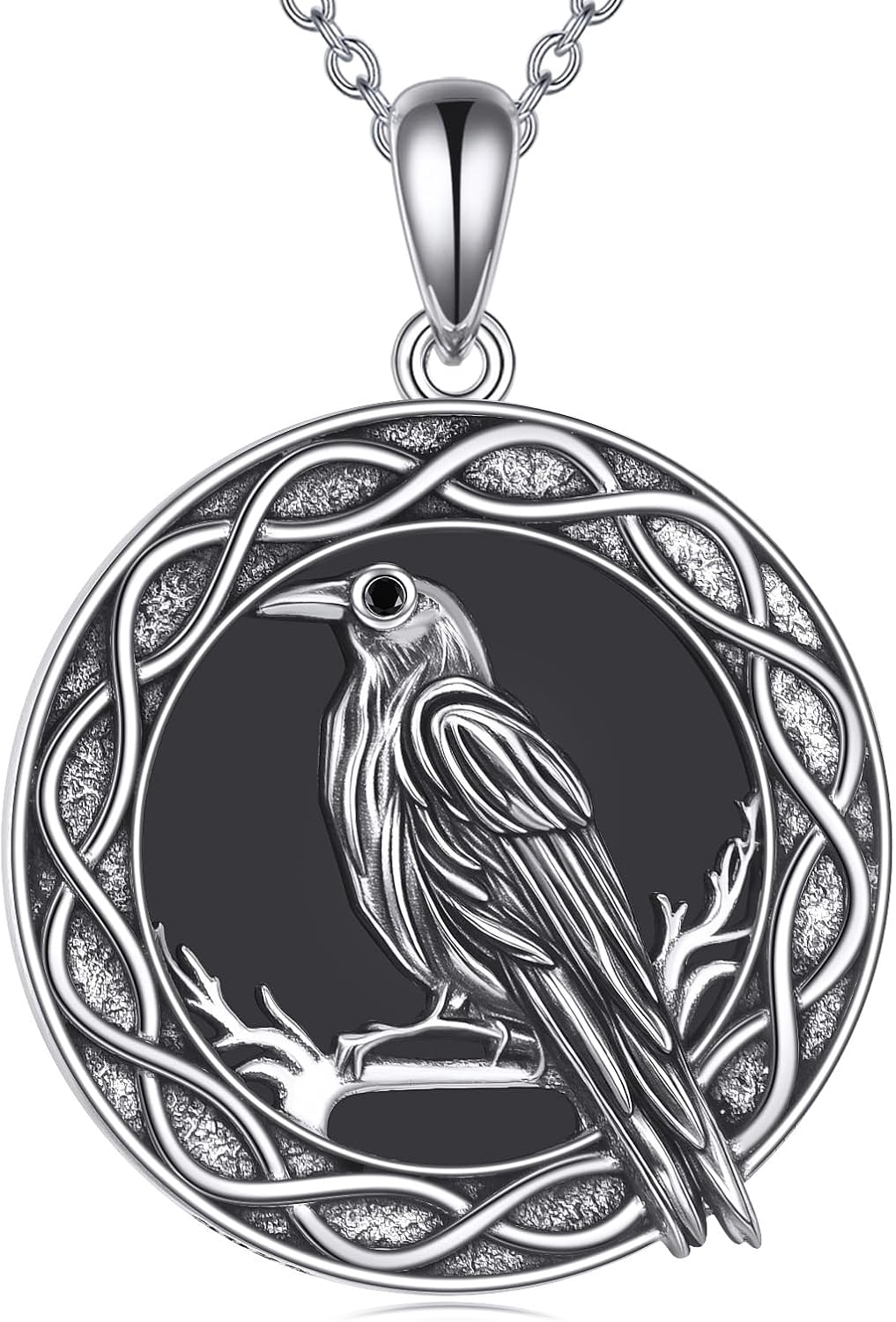 YAFEINI Raven Necklace 925 Sterling Silver Black Onyx Raven Pendant Necklace Vintage Halloween Crow Necklace Jewelry Gifts for Women Men