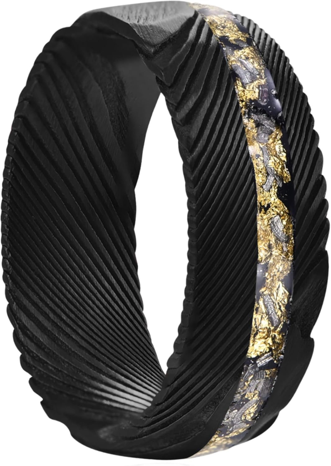 NUNCAD Damascus Ring 8mm Black/Gold/Silver Engagement Wedding Bands Jewelry Gifts for Boys Father's Day Size 7-12
