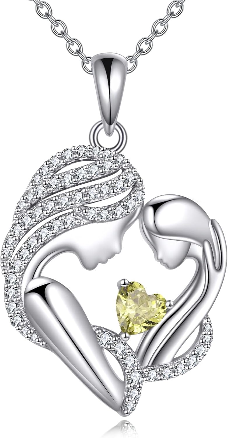 YFN Mother and Daughter Necklace 925 Sterling Silver Heart 12 Birthstone Cubic Zirconia Pendant Necklace Gifts for Mom Women