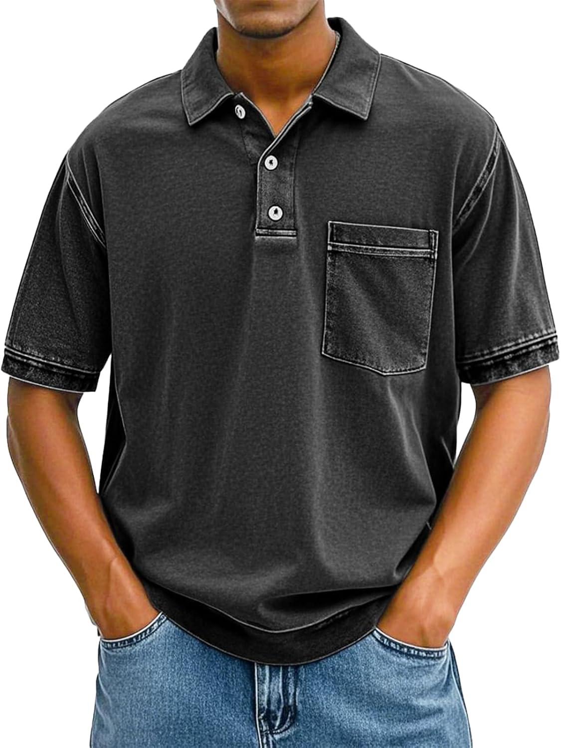 Summer 2025 Polo Shirts for Men Solid Color Vintage Lapel Oversized Loose Short Sleeve Daily Versatile Tops