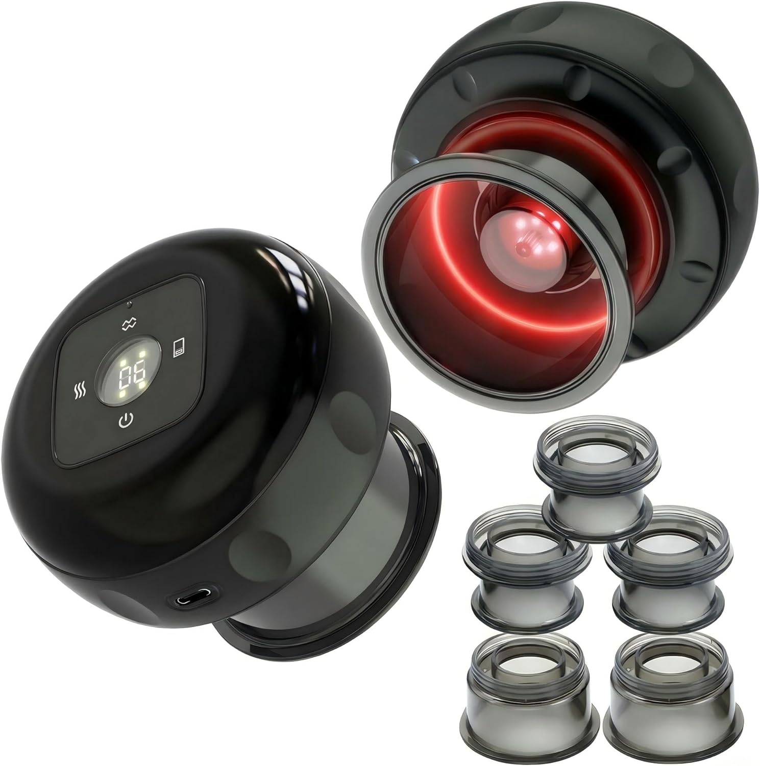 - Red Light Therapy & Heated Massager : electric cupping device Featuring 12 suction levels and 12 temperature settings, And configure 5 suction cups our red light therapy kit offers layered relaxation. Whether you prefer gentle care or deep muscle relax , it delivers targeted relief to every part of your body. First-time users are advised to start at Level 1 and gradually adjust to the sensation.