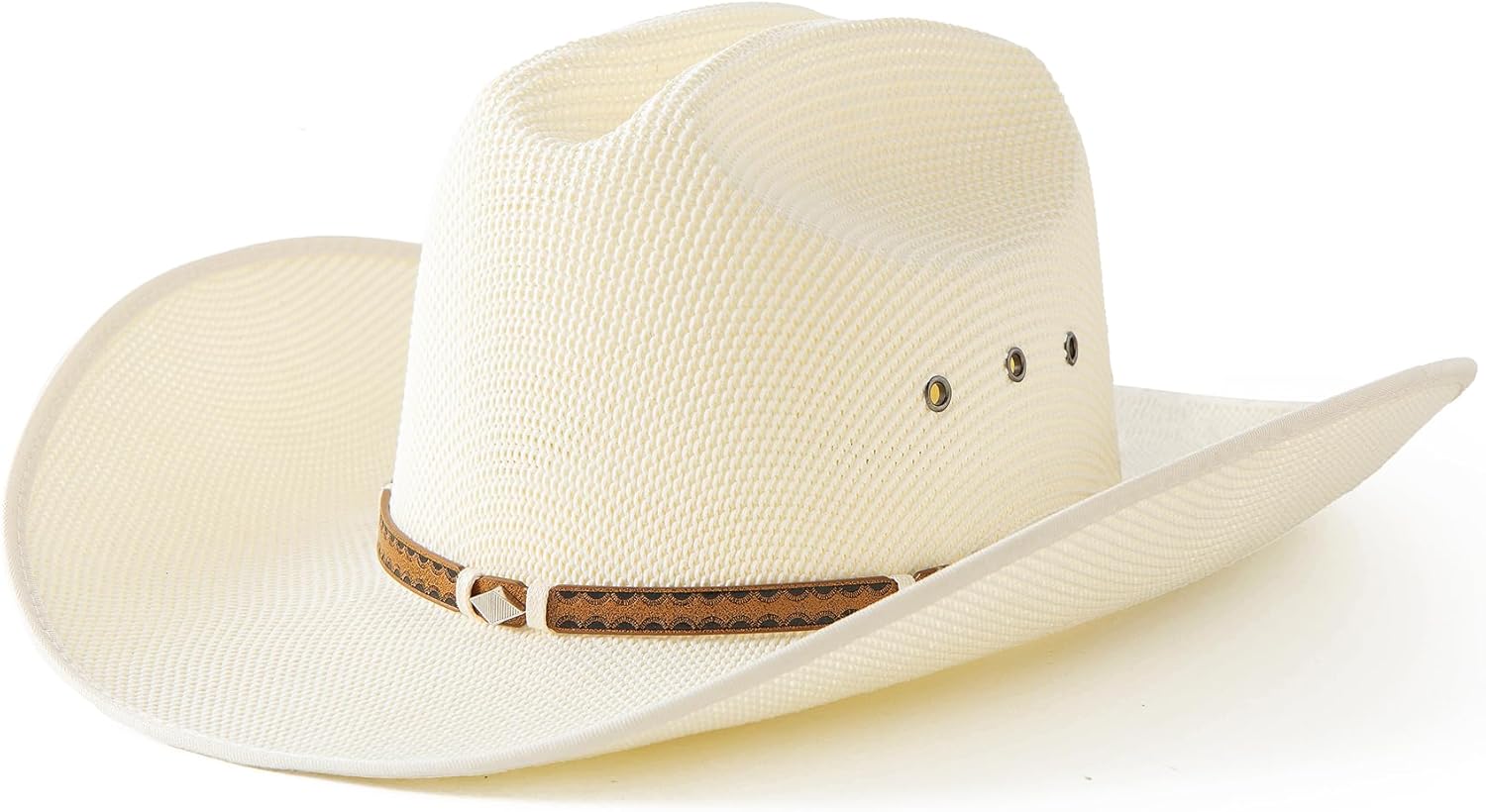Lanzom Men Wide Brim Western Cowboy Hat Classic Style Straw Western Cowgirl Hat with Leather Buckle