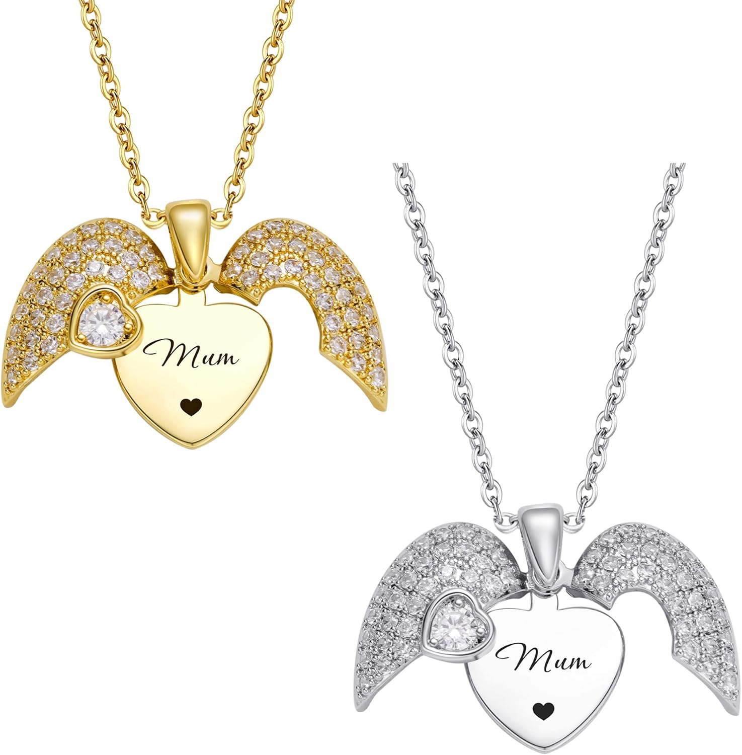 Personalized Angel Wings Necklace, Engraved Name Necklace Guardian Angel Wing Pendant Jewellery Valentine Birthday Mother's Day Gift for Mom Women