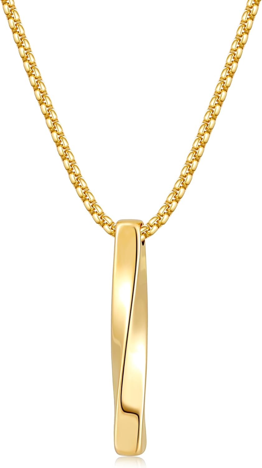 Fiusem Pendant Necklace for Men, Silver Tone/14k Gold Plated/Black Mens Pendant Necklaces with 2.5 mm Box Chain, Stainless Steel Bar Chain, 18-28 Inches
