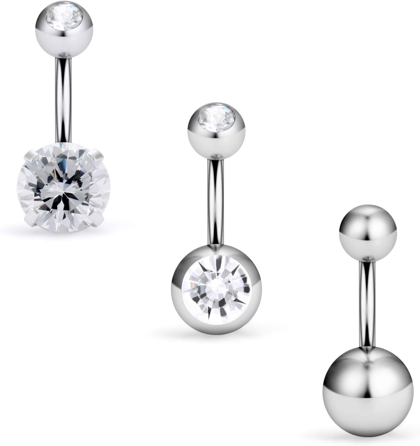 SCERRING 3-9PCS 16G 6mm 1/4 Inch 316L Surgical Steel Short Belly Button Rings Navel Belly Earring CZ Navel Ring Barbell Body Piercing