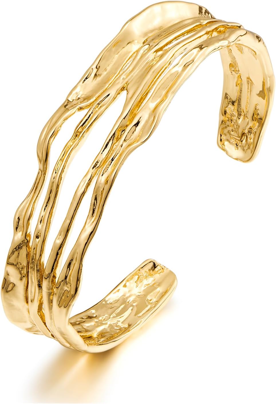 Gold Cuff Bracelet for Women Chunky Multi-layer Cross Wire Open Bracelet Hollow Wide Cuff Bracelets Adjustable Gold Open Cuff Bangle Bracelet