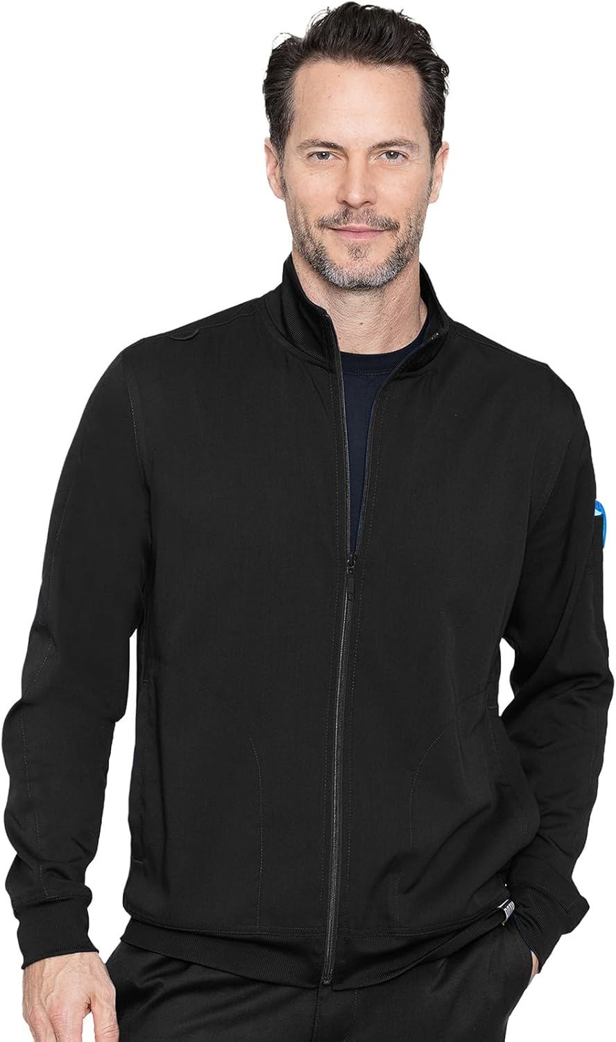 Med Couture Men's Warm-Up Jacket with 3 Pockets, Zip Front Closure and 2-Way Stretch Fabric - MC7678