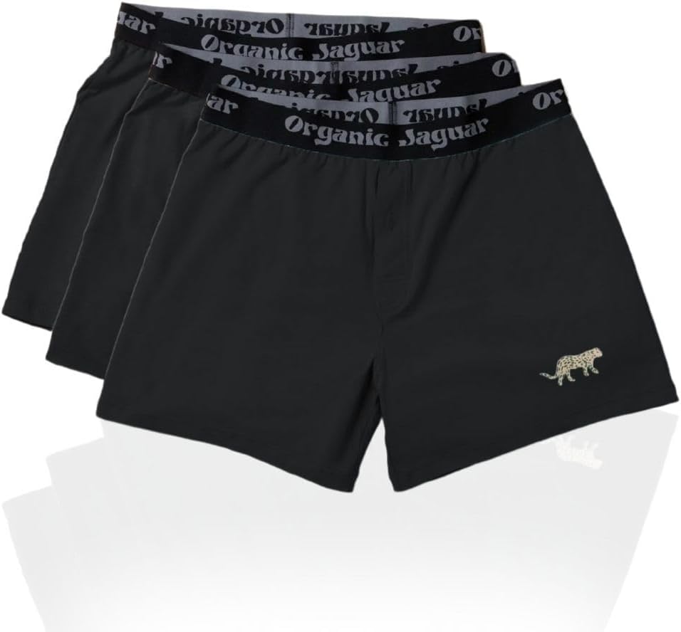 Organic Jaguar Men’s Boxers 3 Pack, 100% Organic Cotton Underwear, Soft Breathable Lightweight Comfort Fit, Elastic Waistband