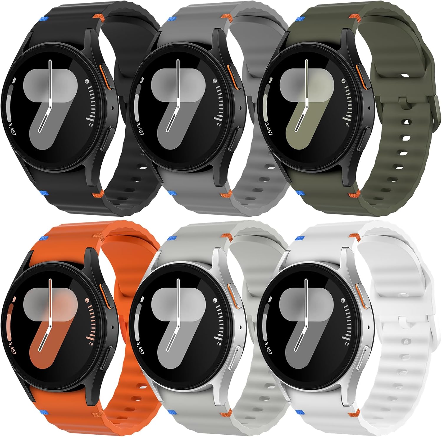 6 Pack Sport Bands Compatible with Samsung Galaxy Watch 7 40mm 44mm Men Women, Soft Silicone Strap for Galaxy Watch 6 5 4 FE 40mm 44mm/Galaxy Watch 6/4 Classic 47mm 43mm 46mm 42mm/Watch 5 Pro 45mm