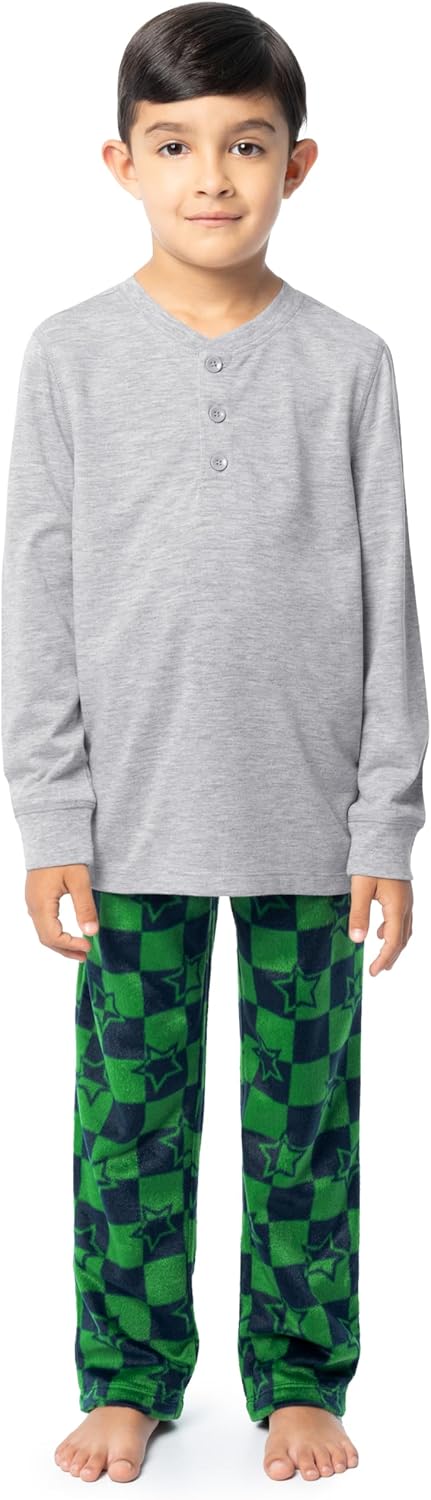 Fruit of the Loom boys Long Sleeve Jersey Henley Top and Fleece Pant Sleep Pajama Set