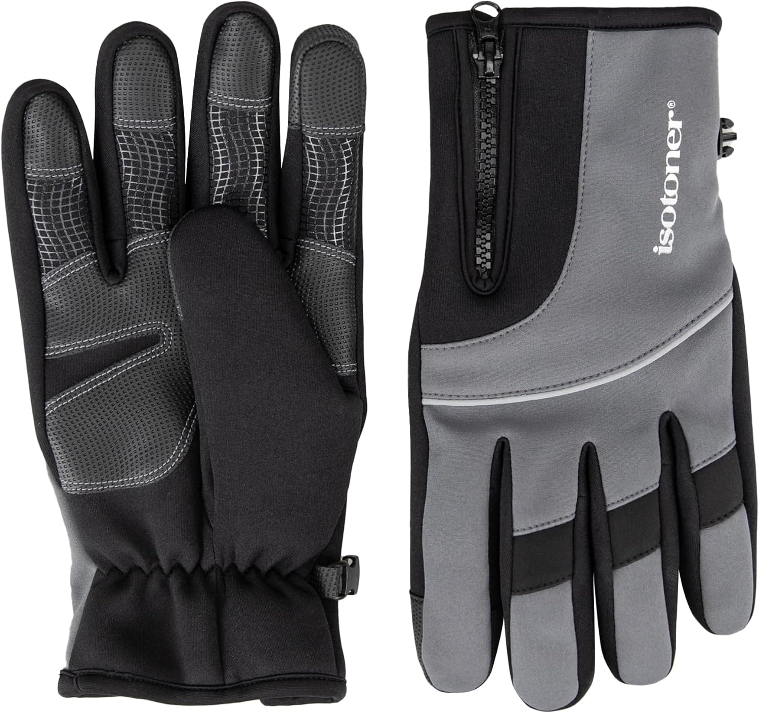isotoner mens Water Repellent Lined Neoprene Grip Touchscreen Gloves With Zipper