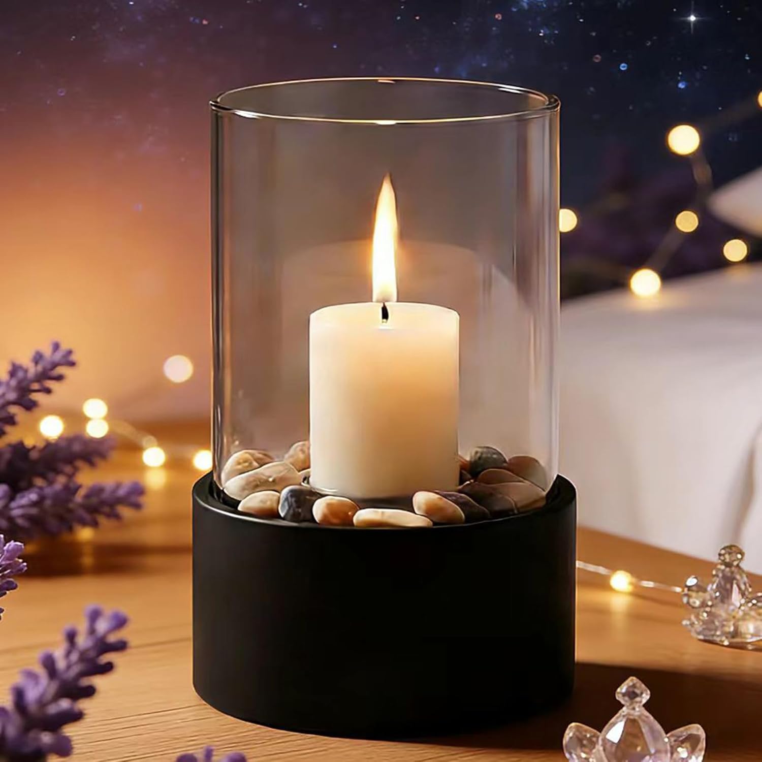 EastFlame Tabletop Hurricane Candleholder with Decorative Stones - Suitable for Dia 2.5" and Below Pillar Candles and Scented Candles, Gift for Dinner Table Centerpiece & Housewareming Gift