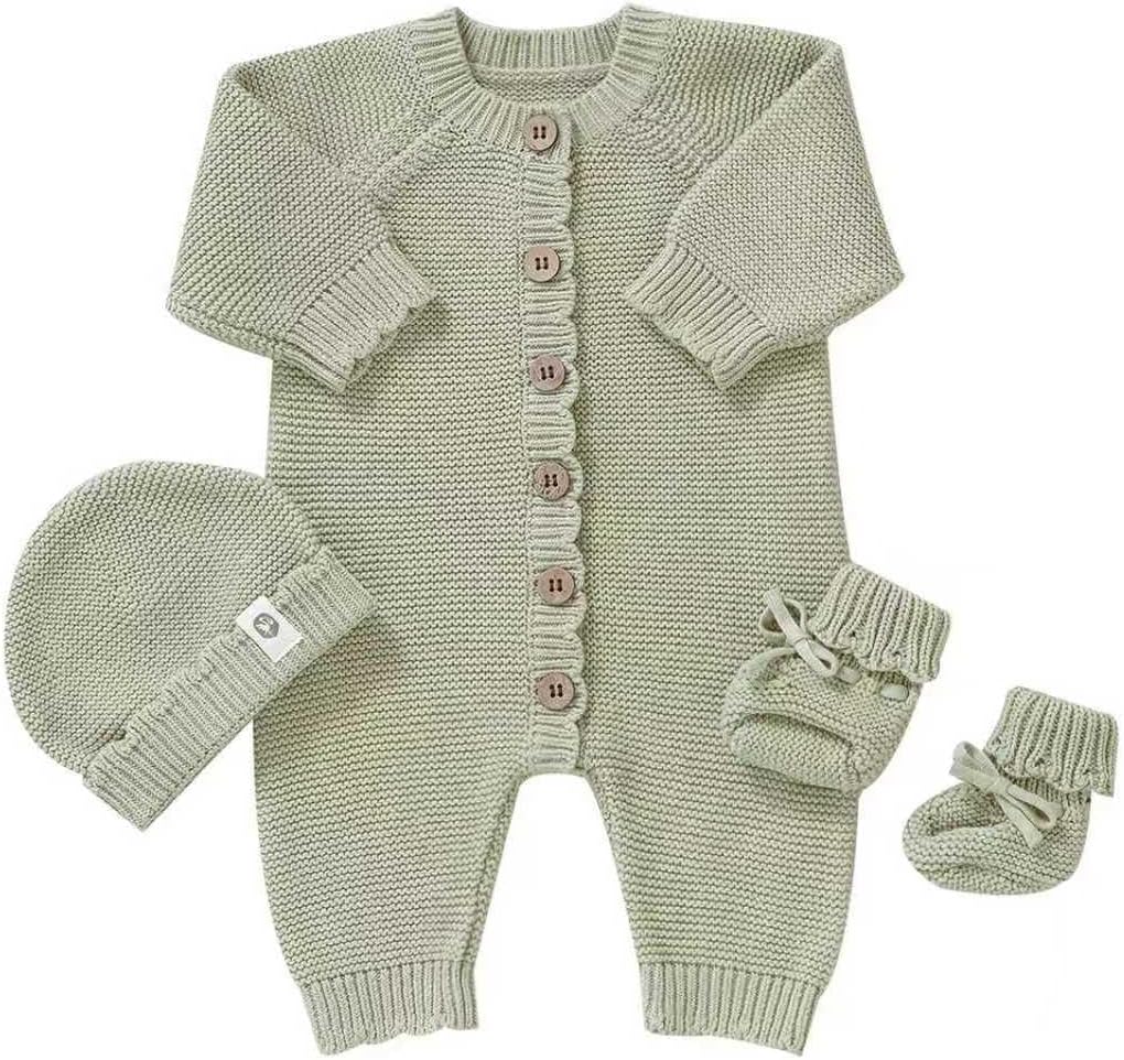 Organic Cotton Baby Sweater Knit Romper Hat Booties 3 Piece Newborn Infant Set LongSleeve Cute Outfit Boy Girls Clothe