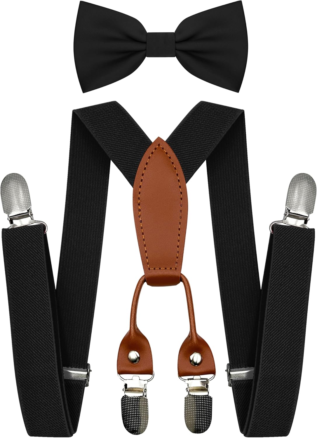 Adjustable Baby Boy Suspenders and Pre-tied Bow Tie, Kids Bowtie and Suspenders with 4 Strong Metal Clips