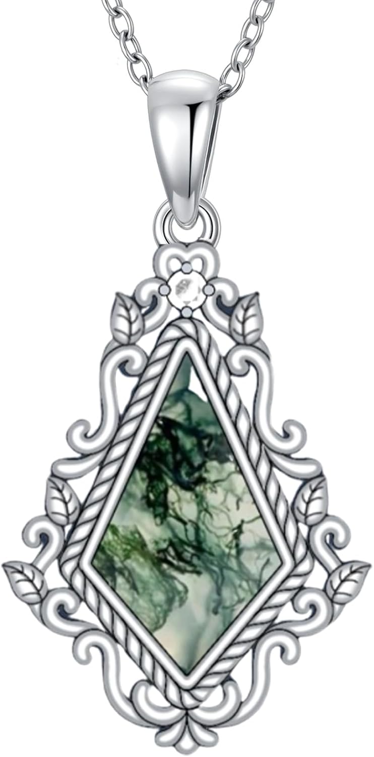 Moss Agate Pendant Necklaces for Women Sterling Silver Natural Moss Agate Pendant Jewelry Gift for Women