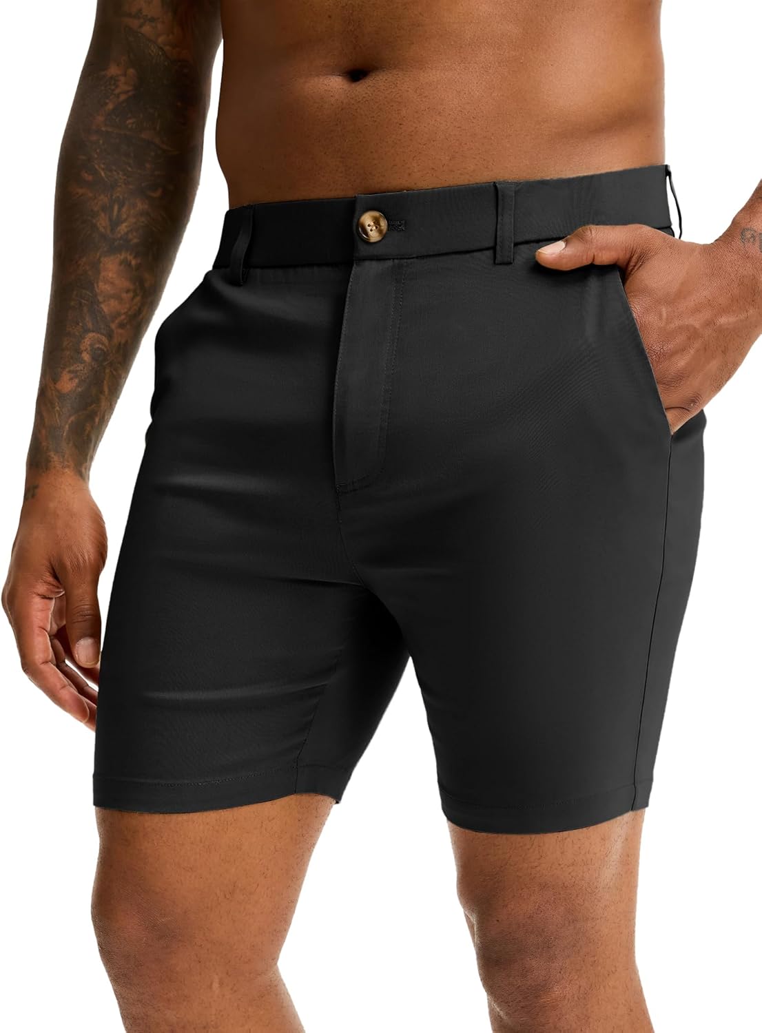 Comdecevis Men's Slim Fit 7" Inseam Chino Shorts - Stretch Skinny Dress Shorts for Work Casual