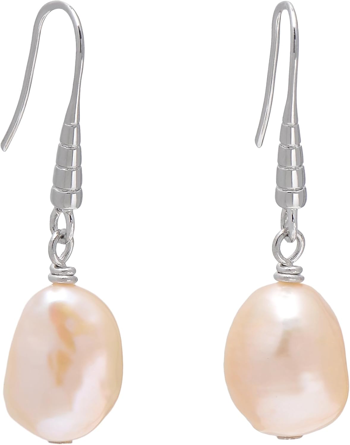 10MM Baroque Pearl Earrings for Women, Cultured Freshwater pearls Dangle Earrings, Pink/White