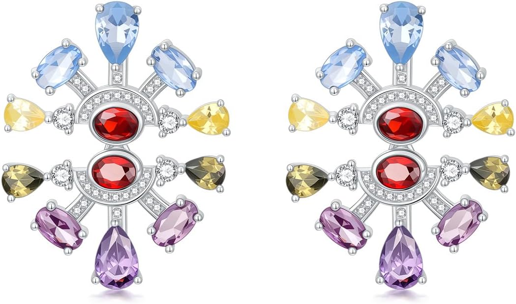 925 Sterling Silver Colorful 5A Cubic Zirconia Stud Earrings for Women Swingable Elegant Earrings for Mom/Friends