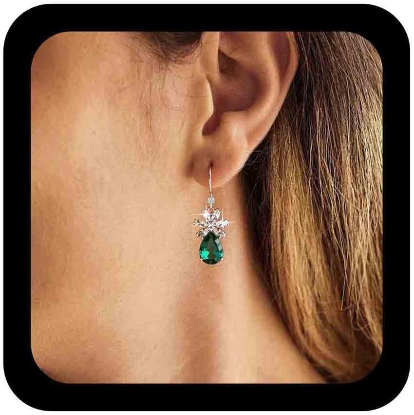 Vintage Cz Flower Emerald Earrings Silver Teardrop Emerald Dangle Earrings Green Crystal Drop Earrings Wedding Green Rhinestone Earrings Jewelry for Women