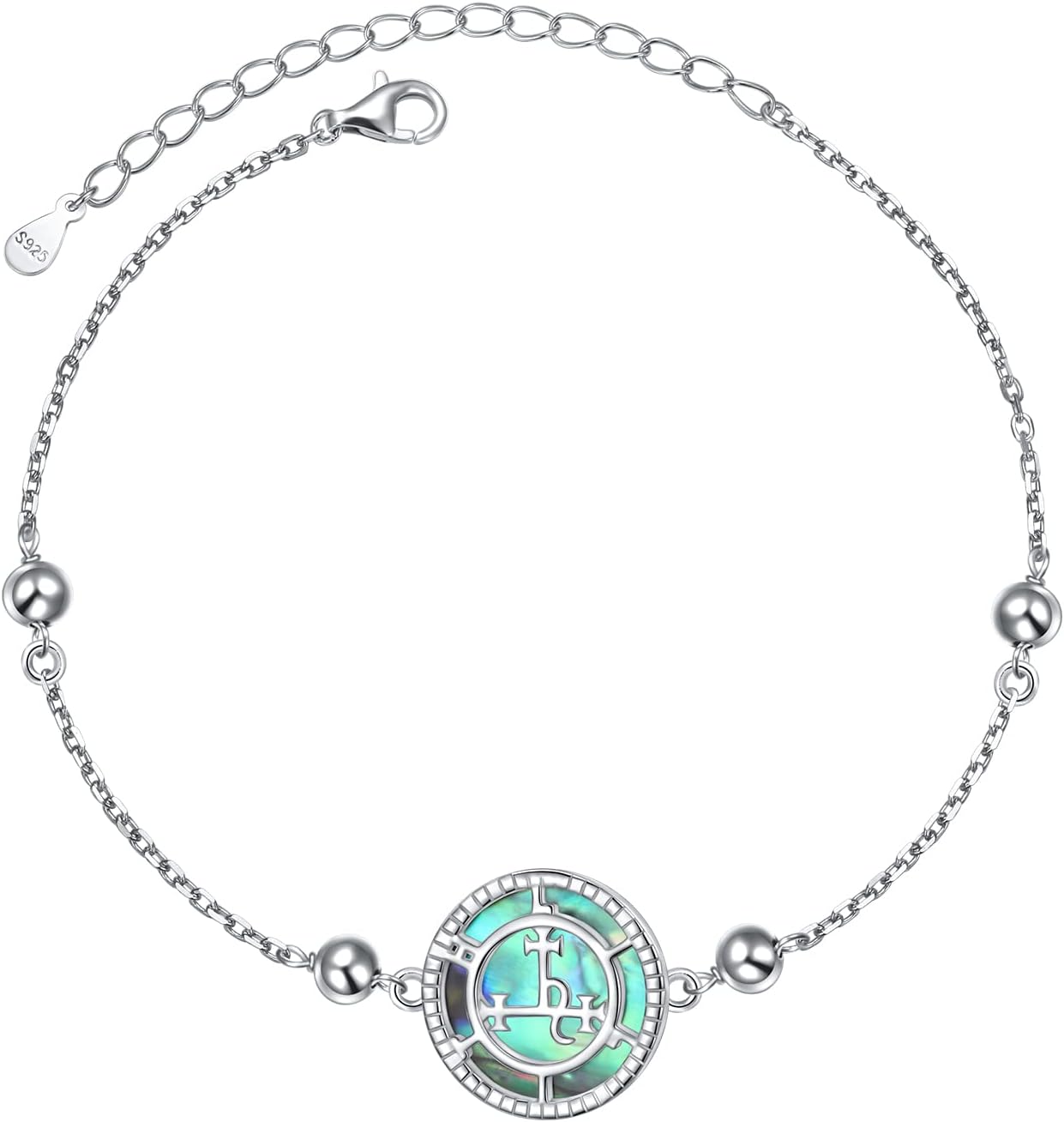 DAOCHONG Sigil of Lilith Abalone Shell Bead Chain Bracelet, 925 Sterling Silver, 7+2 inches