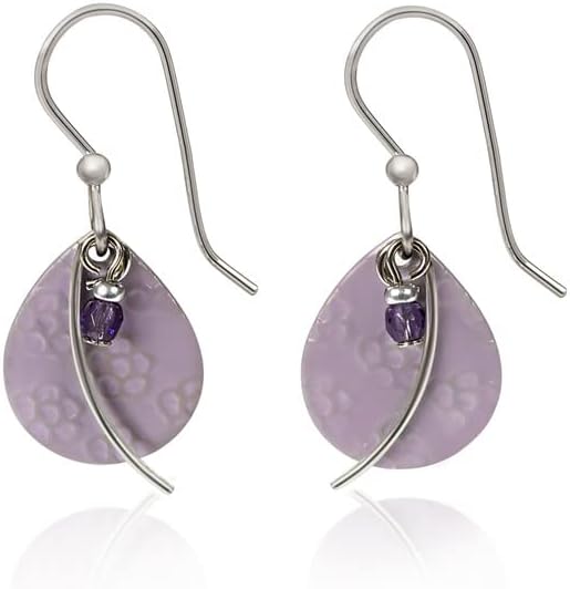 Silver Forest Flower Textured Tear with Wisp and Ameythst Drop NE-1912B