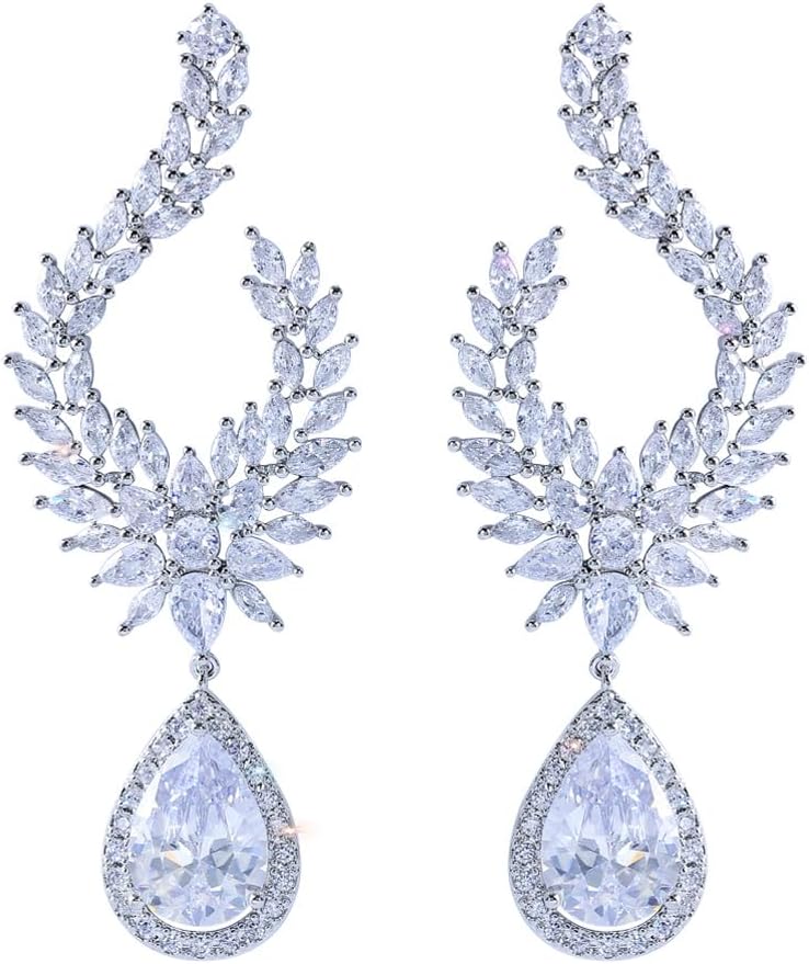 Luxury Long Dangle Water Drop Symmetrical Marquise Cubic Zirconia Wedding Party Earrings For Women Bridal Jewelry