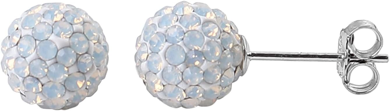 925 Sterling Silver Sparkle Crystal Round Disco Ball Opal Stud Earrings for Women 6/8/10/12mm