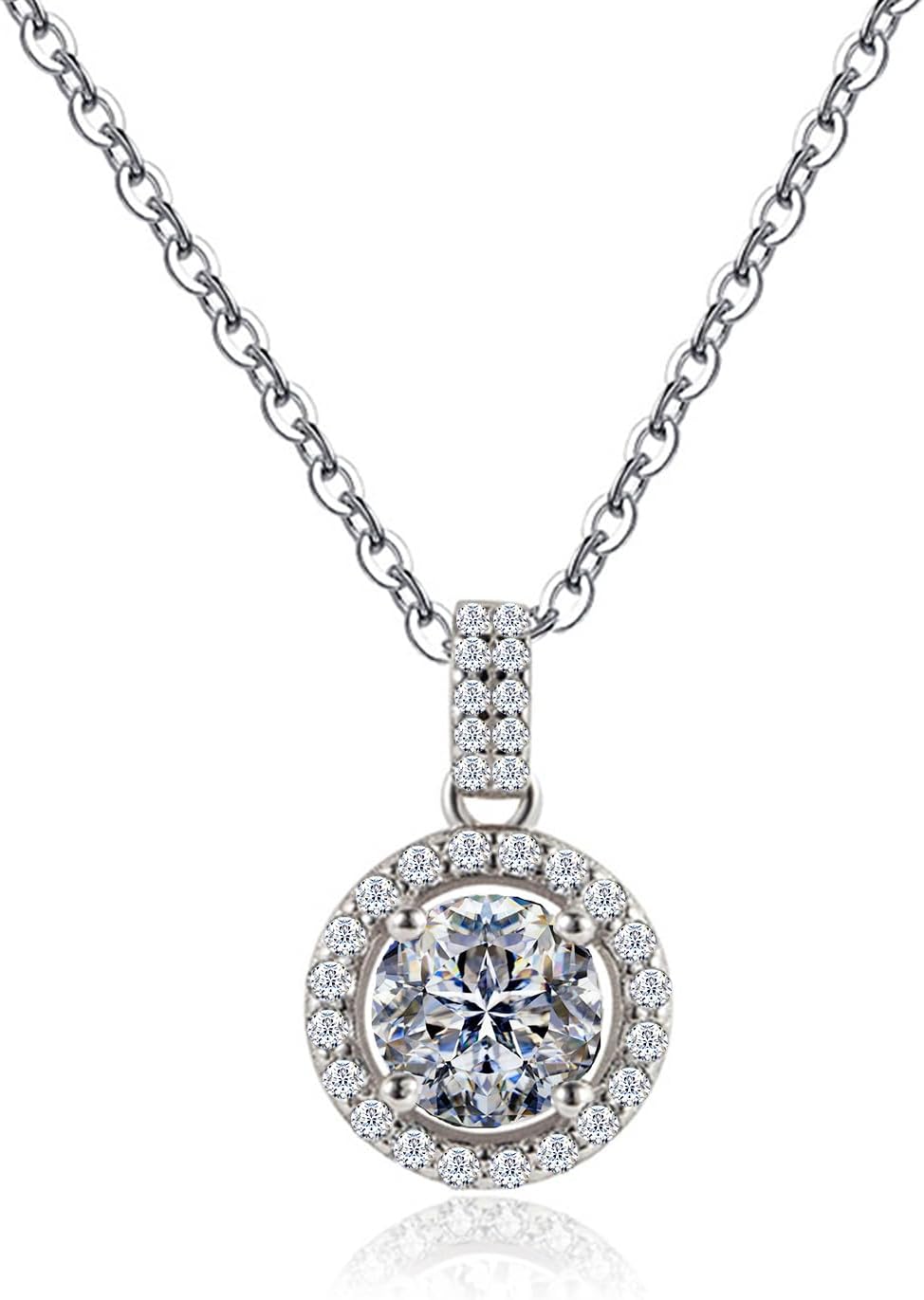 Round Moissanite Necklace, 925 Sterling Silver 1.0 CTW D Color VVS1 Simple Dainty Pendant Wedding Christmas Gift for Women, Reunion Collection