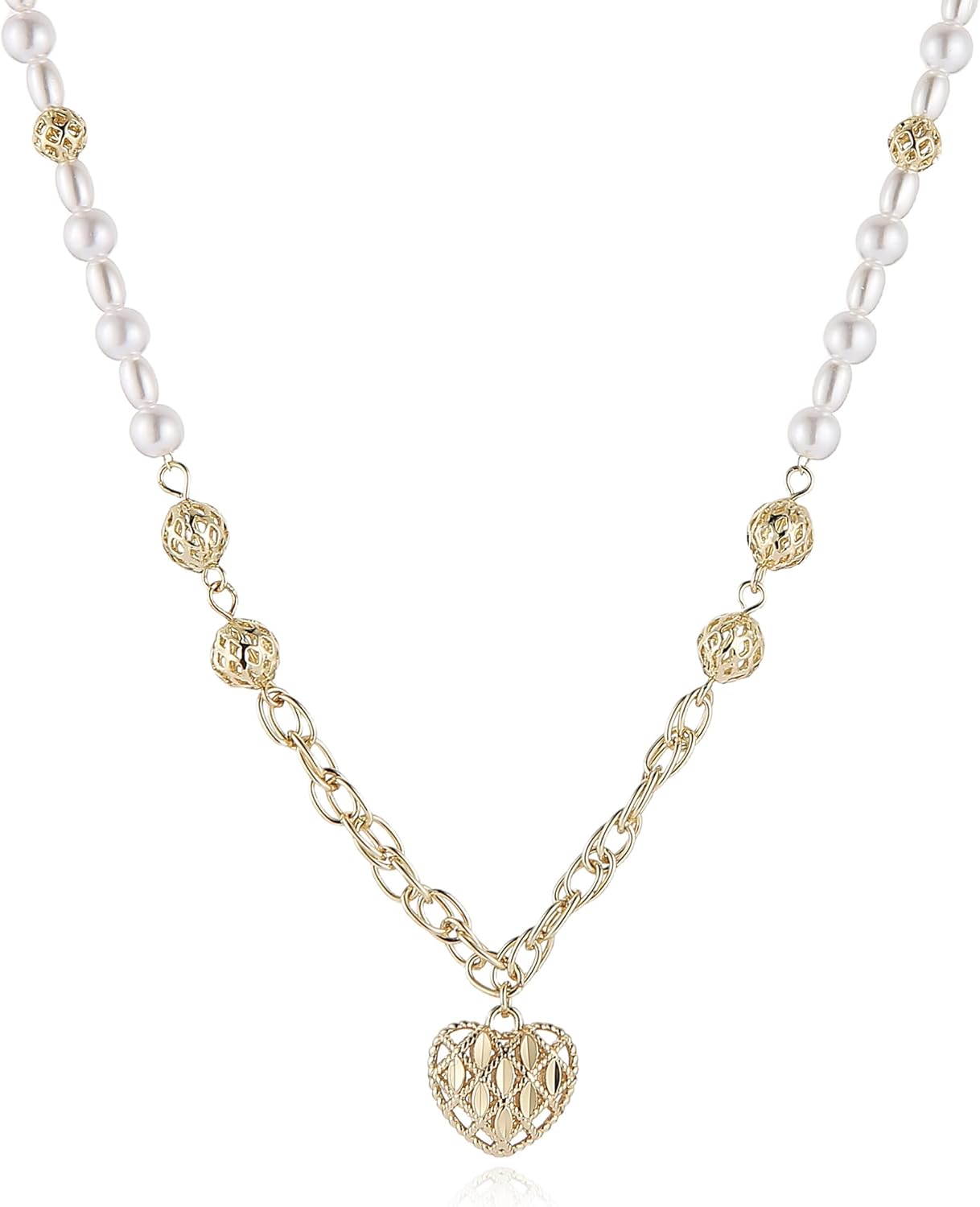 HZMAN 18 Inch Adjustable Gold-Plated Brass Heart-Shaped Hollow Pendant Pearl Choker Neck For Women Gift For Her