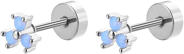 Blue Flower Cartilage Flat Back Earrings Studs for Women Dainty Small Floral Stud Earring Conch Helix Tragus Piercing Jewelry