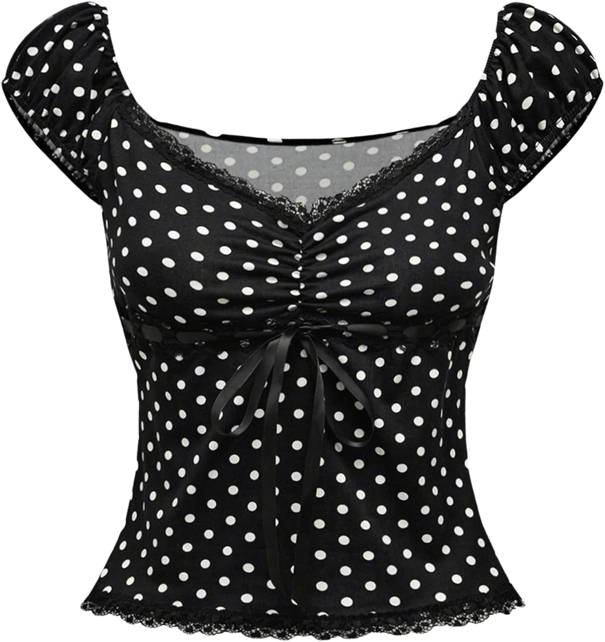 SOLY HUX Women's Polka Dots Shirts Y2k Fairy Grunge Lace Patchwork Babydoll Crop Tee Tops Aesthetic Clothes