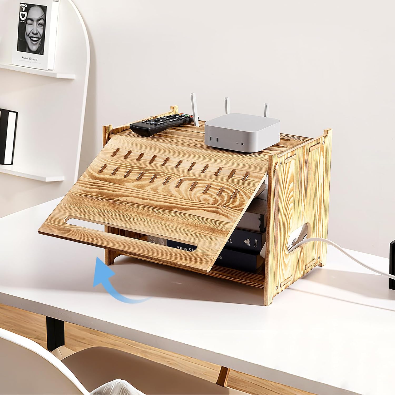 - Organized Router & Projector Storage Solution: CABTE Router Shelf and Projector Stand combine functionality with elegance, keeping your Router, Modem, Box Modem Cable, and Projector clutter-free. Designed with Solid Wood construction, this Router Cover Organized unit ensures durability while blending seamlessly into home or office spaces.