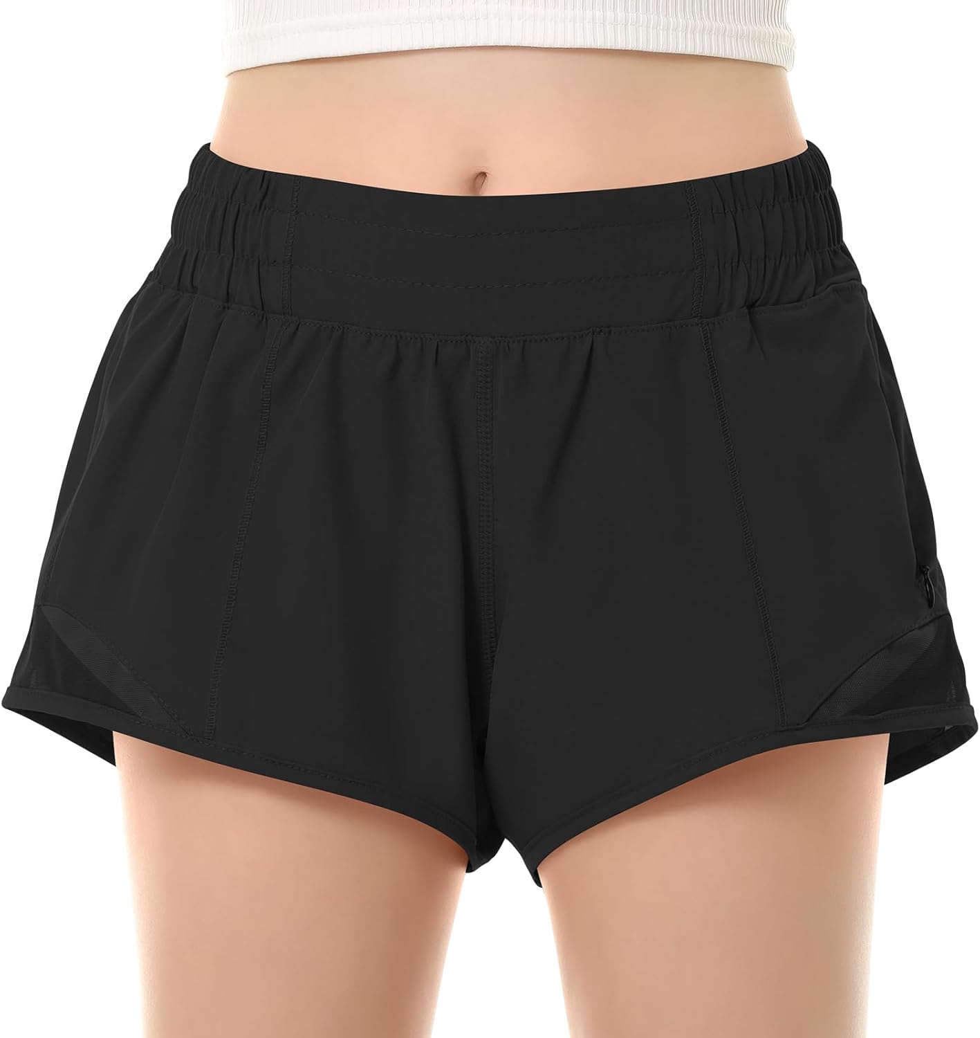 QooNoo Girls Athletic Shorts with Zipper Pocket Lightweight Elastic Waist Running Shorts for Teen Girls Kids Active Sports
