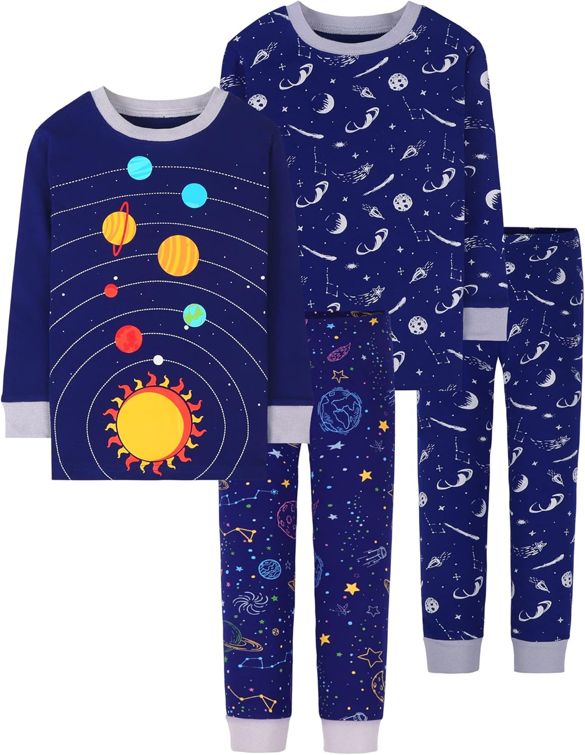 DAUGHTER QUEEN Boys Pajamas 4 Pieces Long Set 100% Cotton Sleepwear Size 18 Months-12 Years
