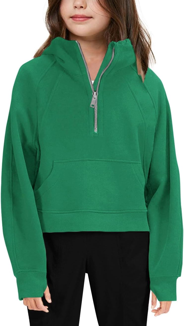 Girls' Hoodies Sweatshirts Half Zipper Pullover Crop Tops for Teen Girls Long Sleeve Sweater Thumb Hole