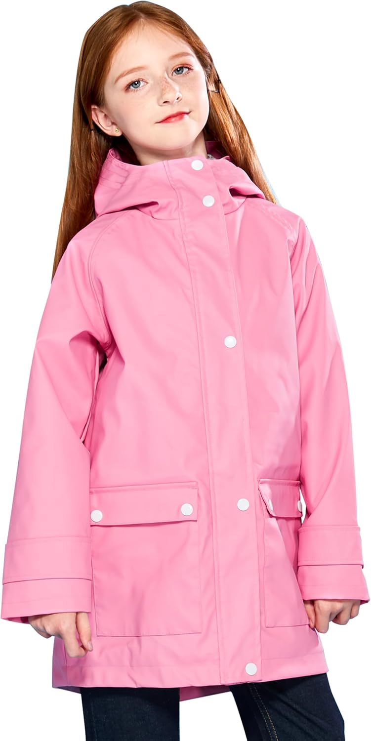 SOLOCOTE Kids Rain Jacket Hooded Lined Rubber RainCoats for Girls Boys Waterproof Windproof Size 5-14Y