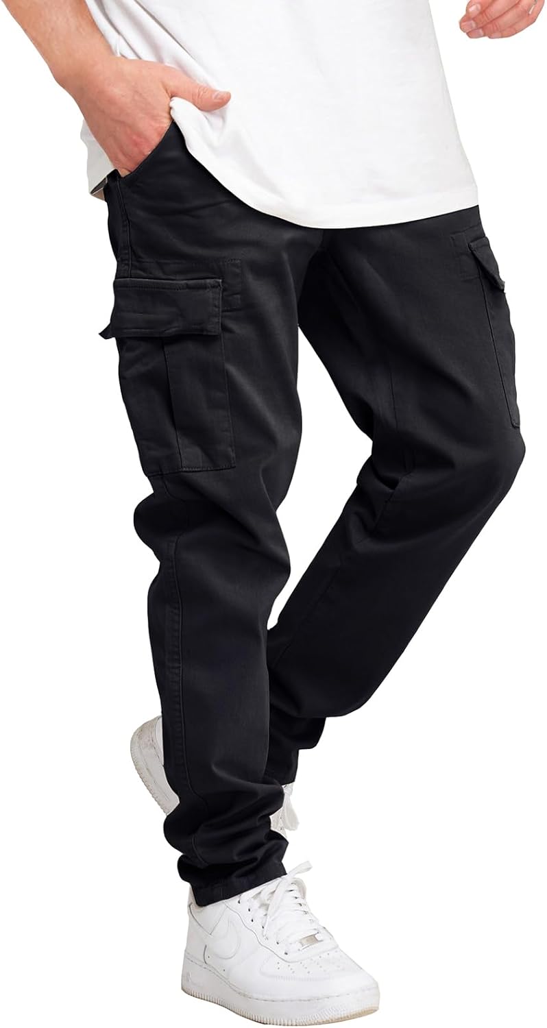 THWEI Cargo Pants for Men Casual Drawstring Joggers Cotton Work Sweatpants Multi Pockets