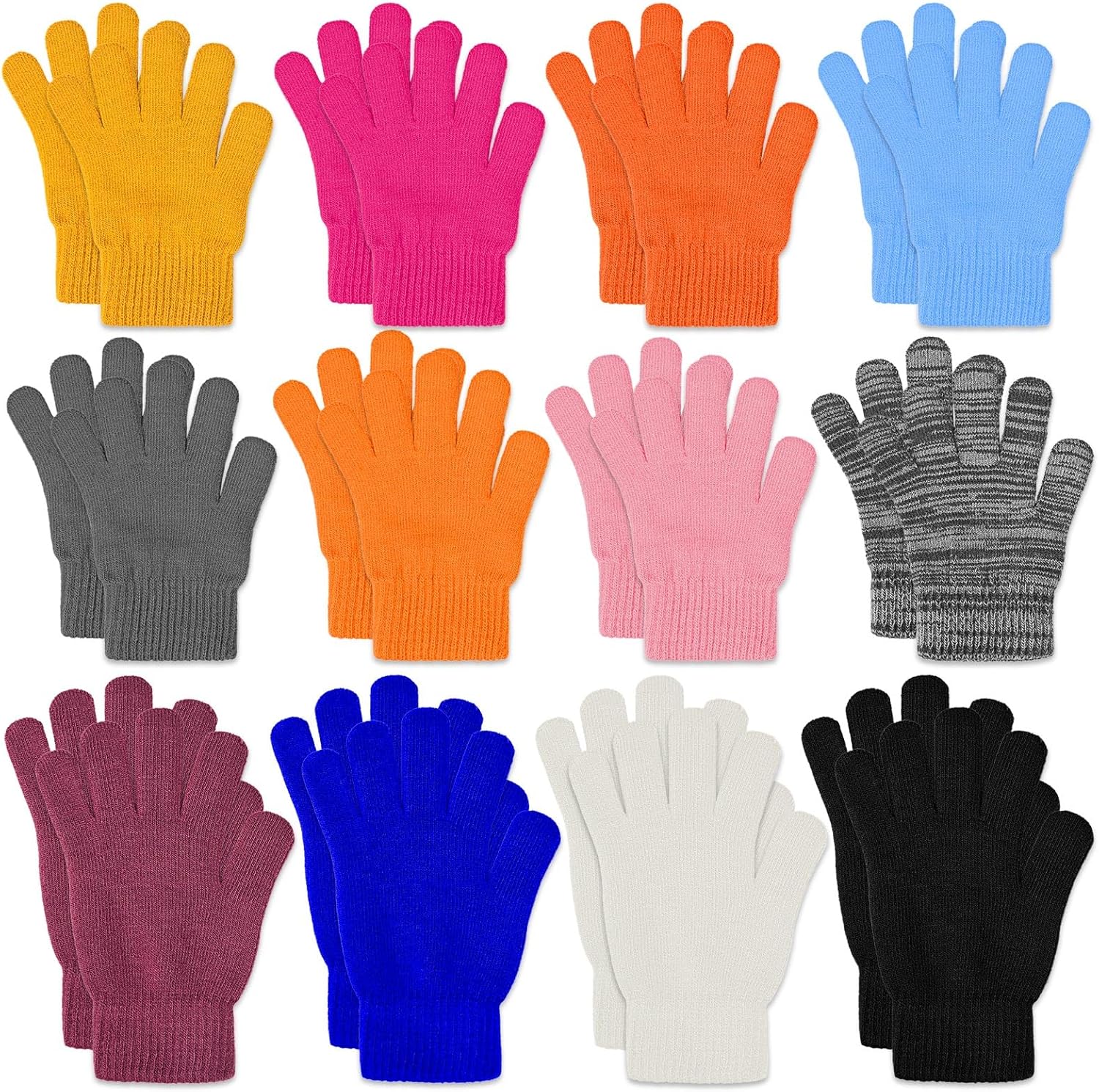 KXCOFTXI 12 Pairs Adult Winter Gloves, Kids Colorful Knit Gloves, 8 Color Mixed Loading, 2 Sizes, Bulk Cold Sports for Driving and Sports