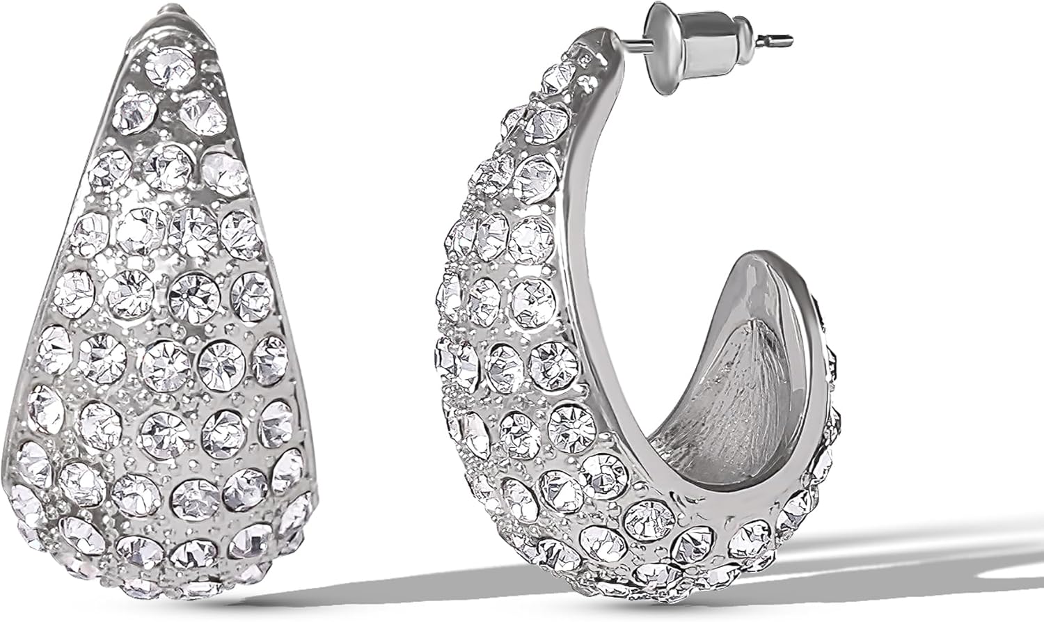 Jessica Simpson Silver Crystal Hoop Earrings for Women – Chunky Teardrop Pavé Rhinestone Statement Hoops – Sparkling Fashion Jewelry