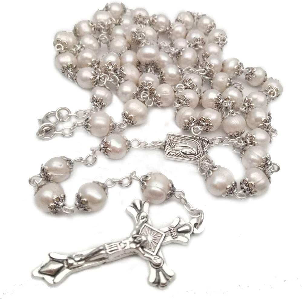 Rosary Beads Catholic for Woman - White Natural Real Pearl Rosary Beads.
