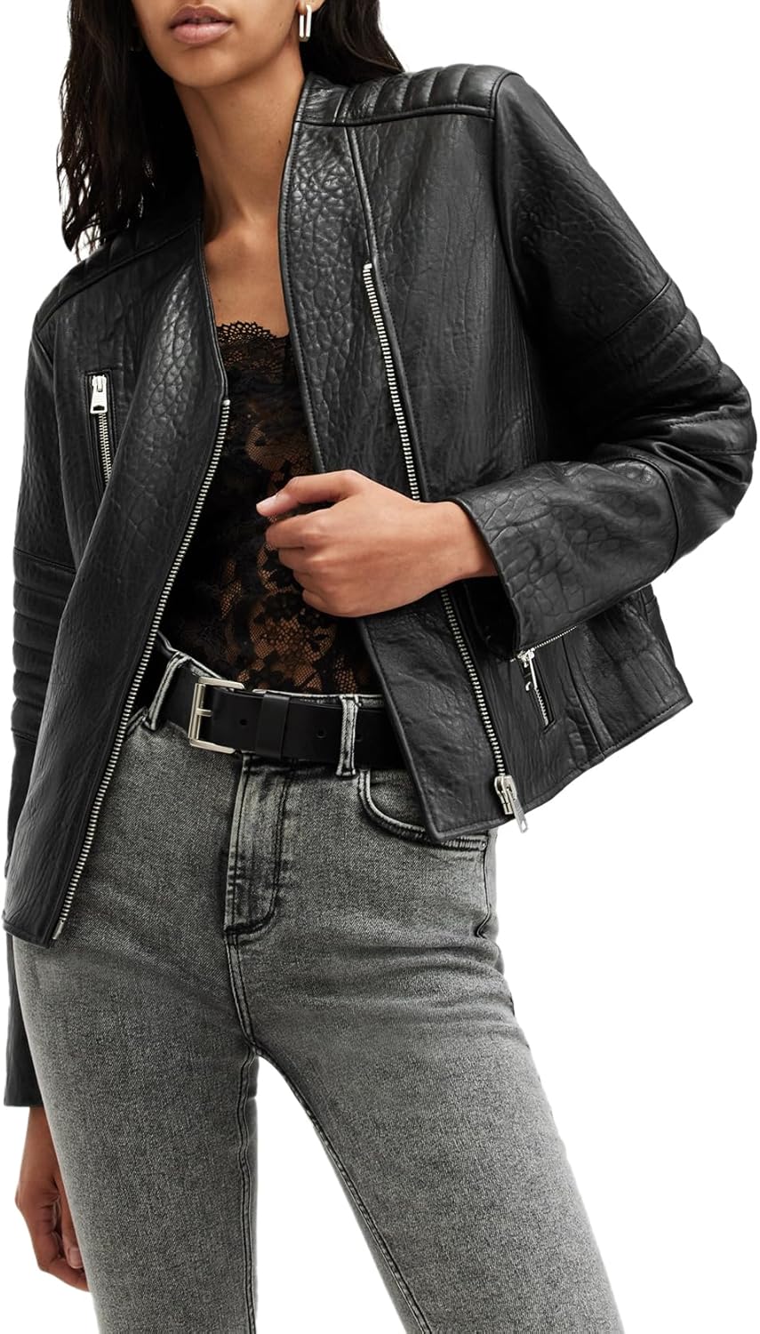 AllSaints womens Cawley Leather Biker Jacket