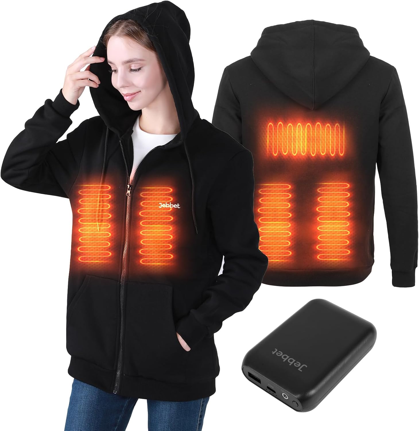 Wodesid Heated Hoodie for Women Men with 7.4V 16000mAh Battery Pack Heated Sweater Zip-up Hooded Heated Sweatshirt