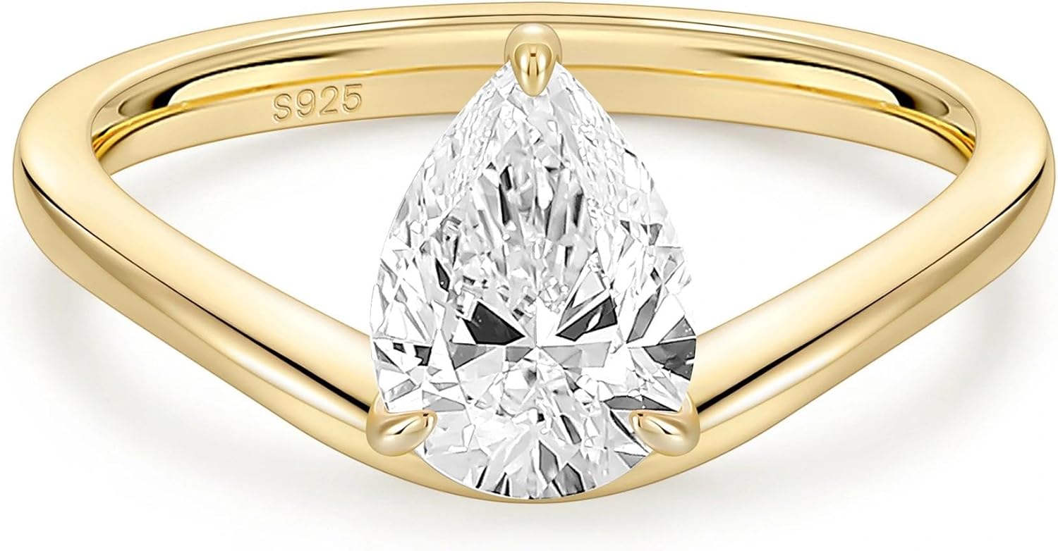 EAMTI 1.5CT 925 Sterling Silver Engagement Rings for Women Oval Cut CZ Bands Solitaire Cubic Zirconia Curved Wedding Promise Gold Rings for Her Size 4-10