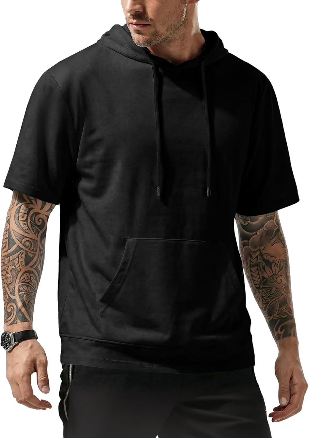 JMIERR Mens Short Sleeve Hoodie Cotton Hooded T-shirts Lightweight Solid Sweatshirts with Pocket