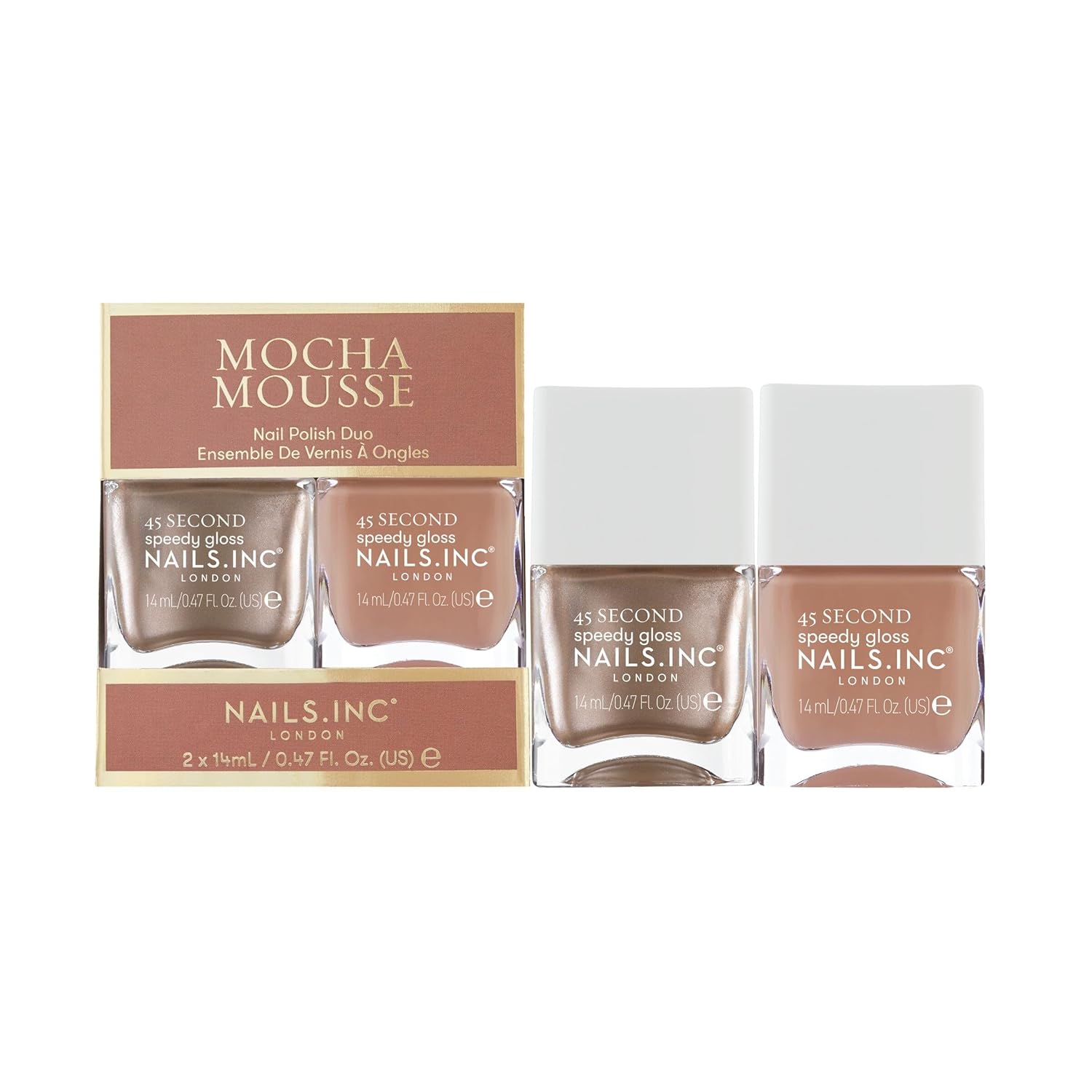 - Model Name: Nails Inc 45 Second Speedy Gloss Mocha Mousse Nail Polish Duo