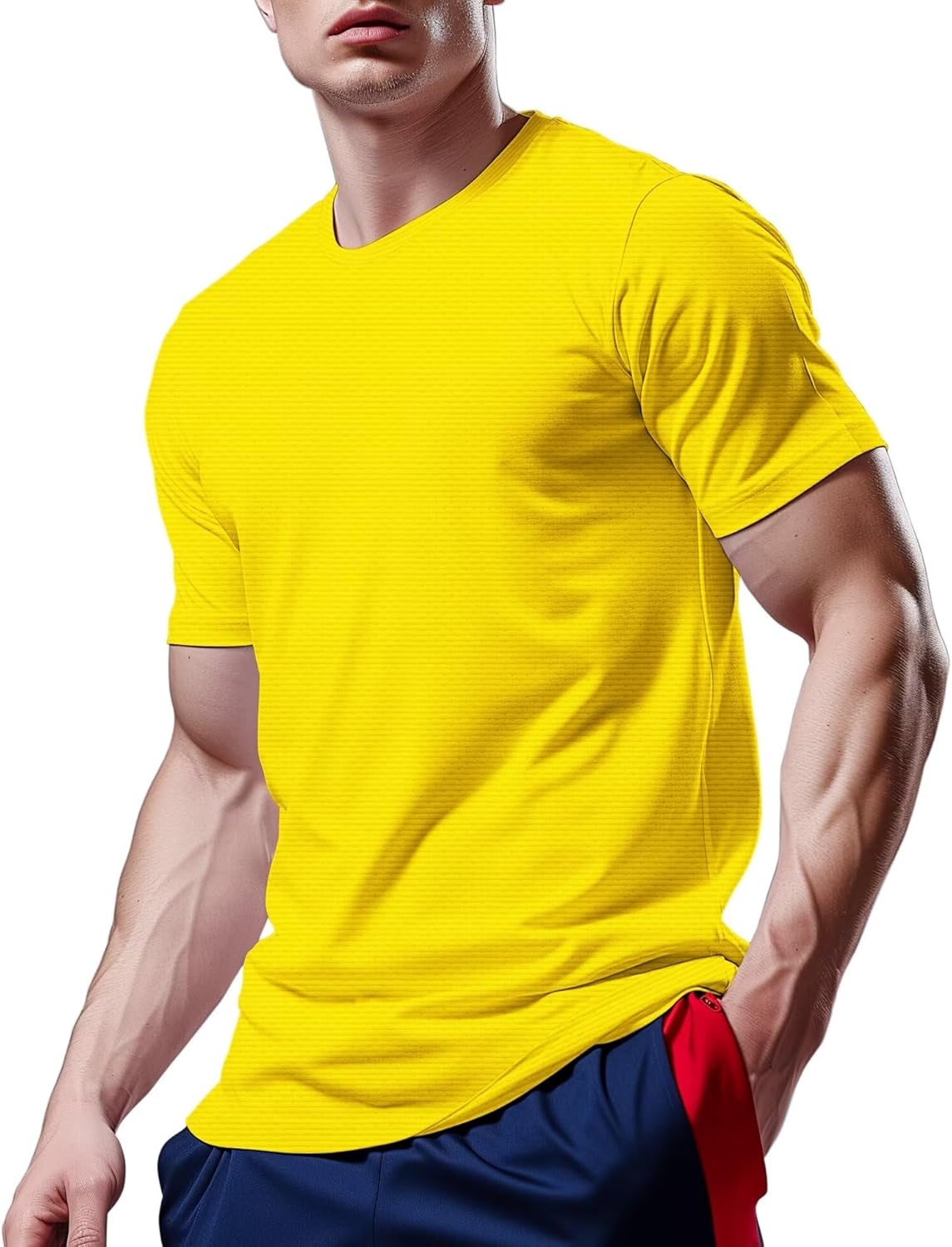 Mens Workout Shirts Dry Fit, Running Top Athletic Tee Moisture Wicking Crewneck Gym T-Shirts Short Sleeve