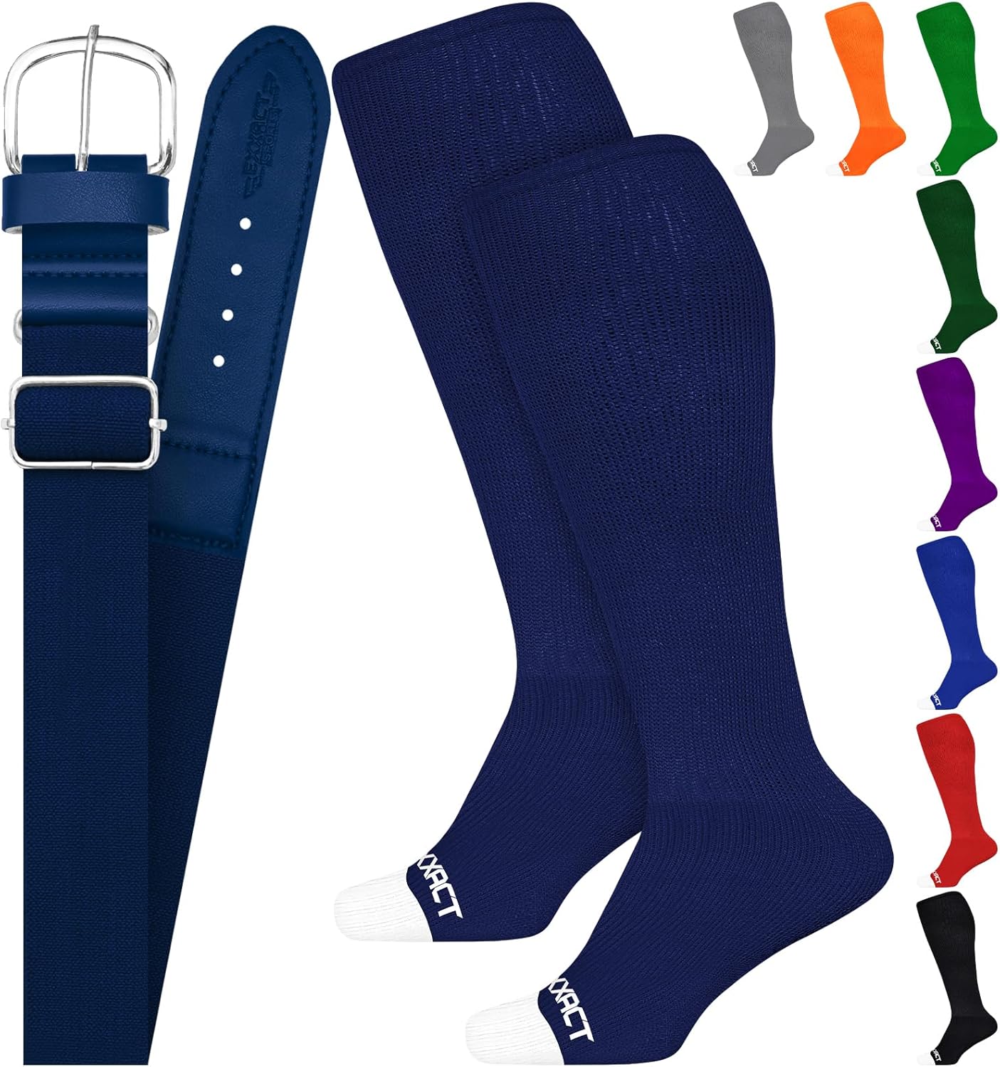Exxact Sports Youth Baseball Socks and Belt Combo for Boys Girls - Soft, Durable Softball Socks and Belt Youth & Adult Sizes