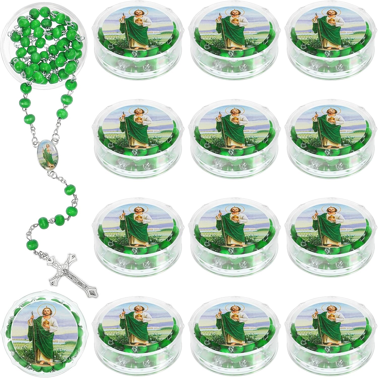 Bucherry 24 Pcs Saint Jude Green Scented Rosary Necklace Baptism Party Favor Catholic Gift with Box Saint Jude Rosary Bead Holy Prayer Necklace with Crucifix Cross